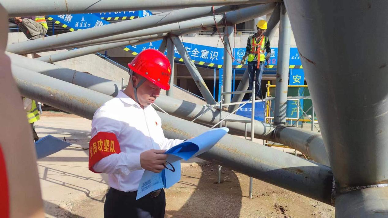 在項目施工現(xiàn)場,總有一個身影來回奔波。他頭戴安全帽,穿梭在綜合體育場施工現(xiàn)場協(xié)調(diào)推進項目建設(shè),他就是項目部臨時聯(lián)合黨支部書記、項目經(jīng)理梅敏。自項目開工建設(shè)以來,他見證了項目在兩年多的時間里從一片荒蕪到“鳥巢”初現(xiàn)。