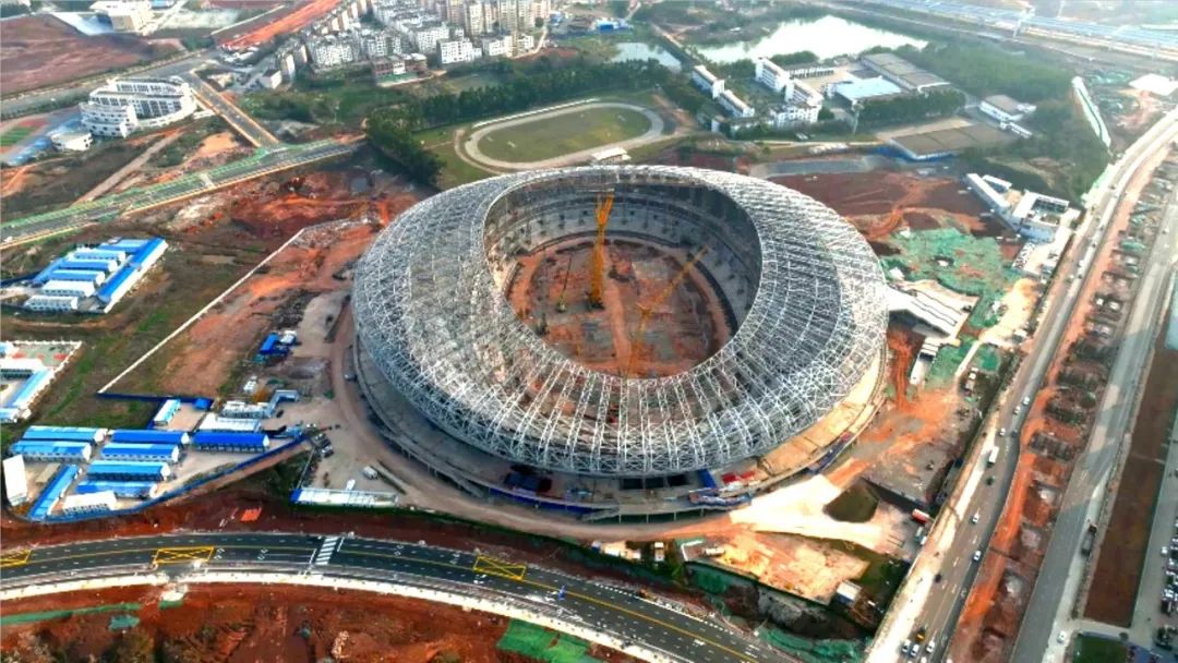 目前,贛州市全民健身中心一期項目鋼結(jié)構(gòu)工程已順利合攏,預(yù)計在2023年12月完工。